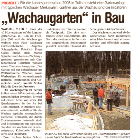 NÖN, Kremser Zeitung, 15.01.2007, Seite 35: "'Wachaugarten' in Bau"